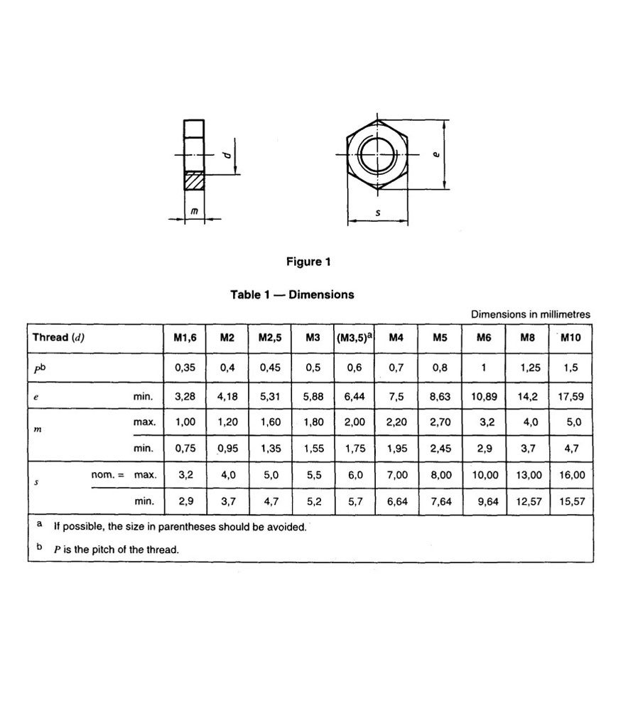 PART 5 HEXAGON THIN NUTS – PRODUCT GRADE B (UNCHAMFERED) (SIZE RANGE M1.6 T0 M10)
